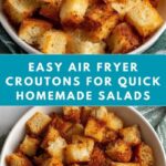 Crispy and golden Air Fryer Croutons made with cubed bread tossed in olive oil and lightly salted, perfect for salads, soups, or snacking. Quick to prepare and cooked to perfection in the air fryer for a crunchy texture without deep frying.