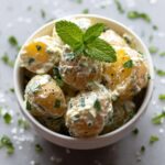 A fresh and creamy baby potato salad featuring tender boiled baby potatoes tossed in a flavorful mixture of mayonnaise, Dijon mustard, rice vinegar, garlic, and fresh herbs like mint and chives. Perfect as a light side dish or a picnic favorite.