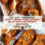 This Baked Fried Chicken recipe offers a crispy, golden crust and juicy interior without the use of deep frying. Marinated in buttermilk, coated with a flavorful seasoned flour mixture, and baked in butter for a healthier twist on traditional fried chicken, it’s perfect for a comforting family dinner with half the grease and all the deliciousness.