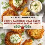 Finish by garnishing your Baltimore Crab Cakes Recipe with fresh dill leaves and a bright wedge of lemon. Serve alongside homemade tartar sauce for dipping – this adds a creamy tang that perfectly balances the savory richness.