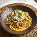 - Serve and garnish: Serve the creamy beef spaghetti hot, garnished with freshly chopped parsley to add a fresh burst of color and flavor.