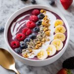 Blend everything on high speed until you get a smooth, thick consistency that’s just perfect for spooning. The frozen berries keep things chilled and give a lovely texture, while the banana ensures it’s velvety without being too thin. You can add more milk if you prefer a looser consistency, but keep it thick enough to hold your toppings well.