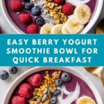 This Berry and Yogurt Smoothie Bowl is a quick and nutritious breakfast option packed with antioxidants, protein, and fiber. Blended to creamy perfection and topped with granola, fresh berries, chia seeds, and shredded coconut, it offers a delicious balance of flavors and textures that’s both satisfying and energizing.