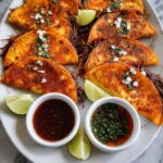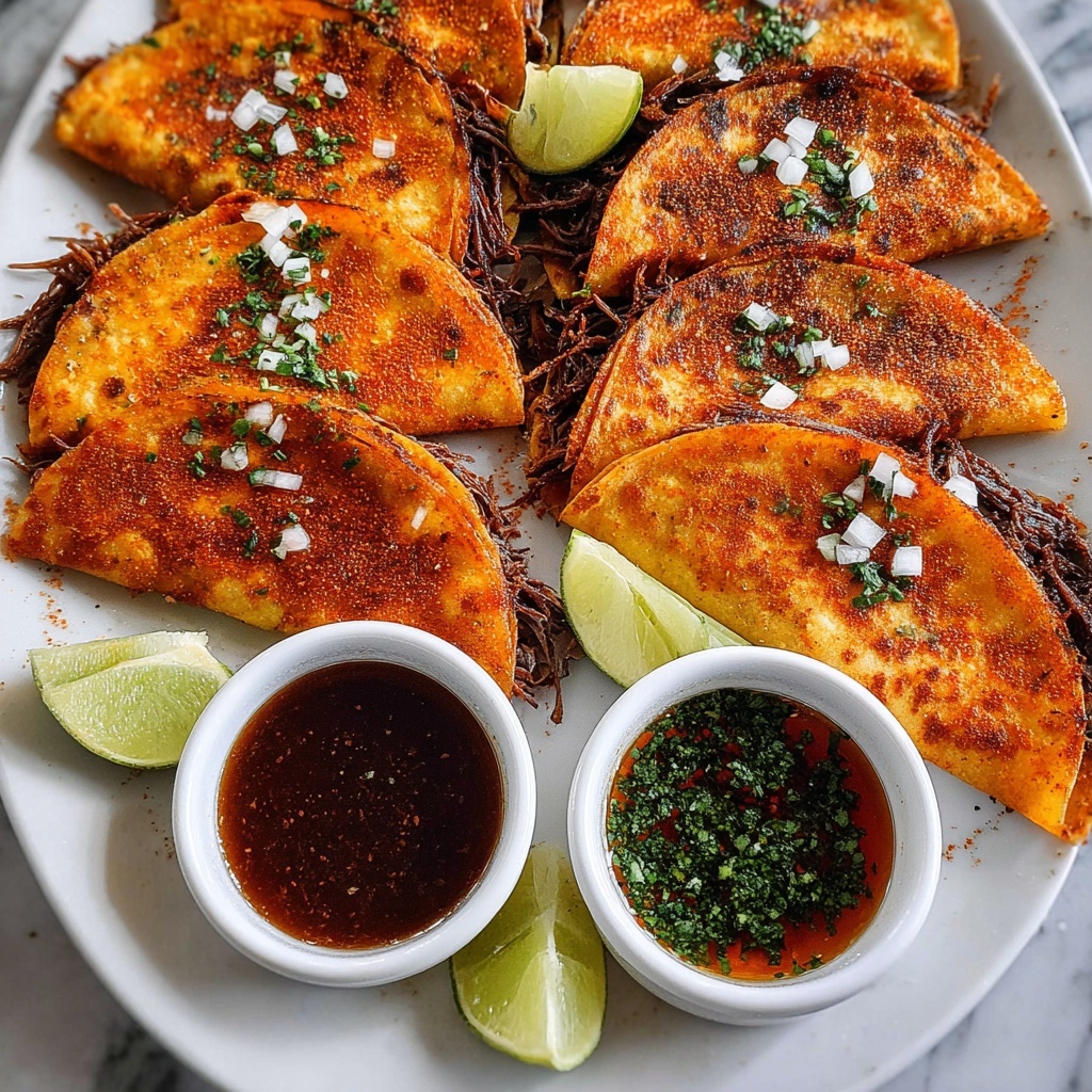 To truly elevate your birria tacos, top each one with fresh chopped yellow onion and cilantro. These garnishes bring brightness and a refreshing crunch that perfectly balances the rich meat and melted cheese. Don’t forget a generous squeeze of lime juice for a zesty pop that amplifies all the flavors beautifully.