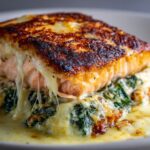 Reheat leftovers in a low-temperature oven (around 300°F or 150°C) for about 10 minutes, or until warmed through. This method helps maintain the salmon’s juiciness and keeps the creamy filling intact without becoming rubbery or dry.