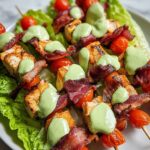 In a blender or food processor, combine ripe avocados, Greek yogurt, fresh lime juice, minced garlic, and olive oil. Blend until you get a creamy, smooth sauce that’s perfect for dipping or drizzling. Don’t forget to season with salt and pepper to bring out the full richness and brightness of the flavors. This avocado sauce is what sets this BLT Skewers with Avocado Sauce Recipe apart—it adds a luscious, indulgent touch that makes these skewers truly irresistible.