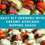 Delicious and easy-to-make BLT skewers served with a creamy avocado sauce. Perfect as a crowd-pleasing appetizer, these skewers combine crispy bacon, fresh cherry tomatoes, crisp romaine lettuce, and toasted bread cubes, paired with a tangy, smooth avocado dip made with Greek yogurt and lime juice.