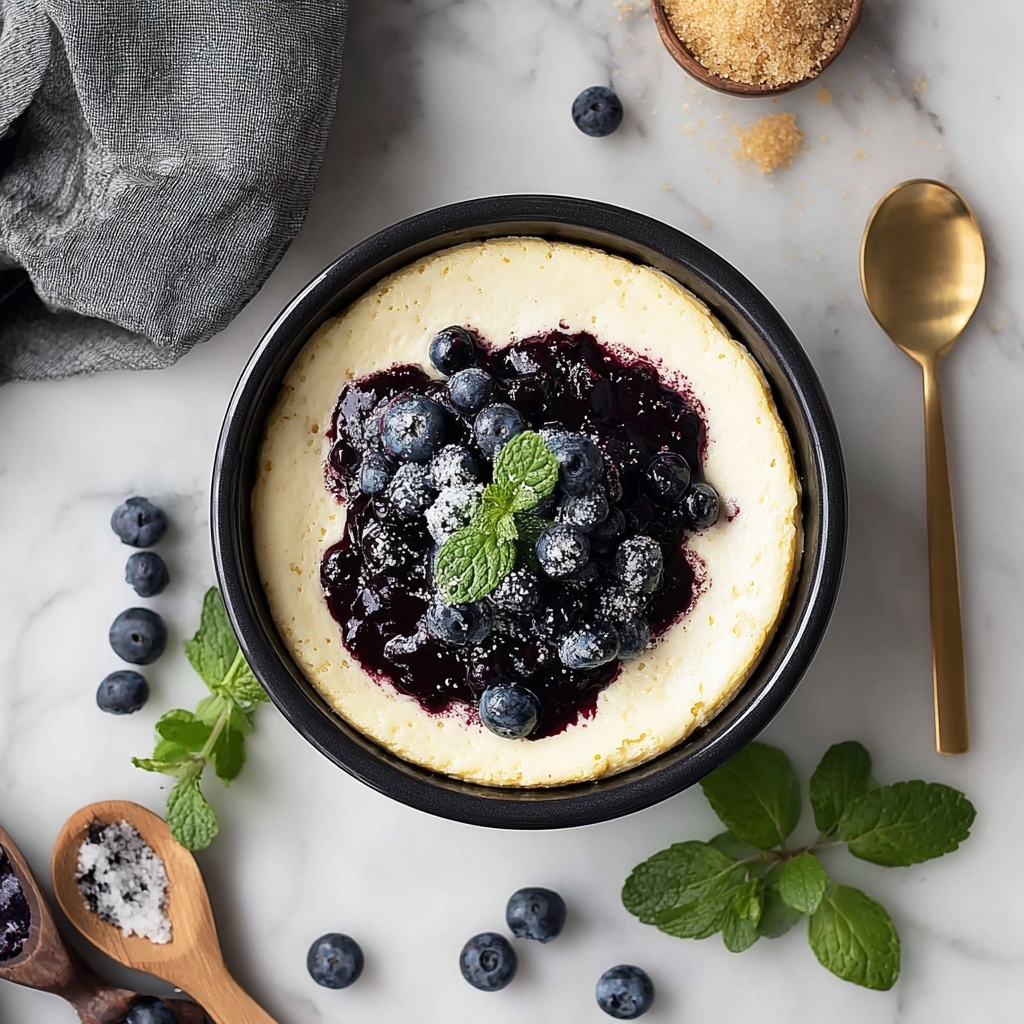 A sprinkle of powdered sugar, a few fresh mint leaves, or additional whole blueberries on top add an elegant touch that enhances both the appearance and the fresh flavor profile of the cheesecake.