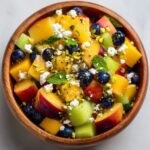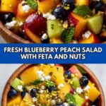 A refreshing and vibrant Blueberry Peach Feta Salad combining sweet ripe peaches, juicy blueberries, tangy feta cheese, and crunchy nuts tossed with a light balsamic vinaigrette. Perfect as a light lunch or a healthy side dish during warm weather.