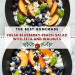 A refreshing and vibrant Blueberry Peach Feta Salad that combines the natural sweetness of fresh blueberries and ripe peaches with the salty tang of feta cheese, crunchy walnuts, and a tangy honey-balsamic dressing. Perfect for a light lunch or a colorful side dish.