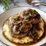 Bobby Flay’s Salisbury Steak with Mushroom Gravy is a comforting and savory dish featuring juicy ground beef patties cooked to perfection and smothered in a rich mushroom and onion gravy. This hearty meal combines tender meat with a flavorful sauce, making it perfect for a satisfying family dinner served over mashed potatoes or rice.