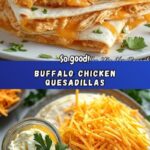 Remove the quesadillas from the pan and let them cool just enough to handle. Slice each into wedges and serve warm. For the ultimate experience, pair them with ranch or blue cheese dressing—it’s the perfect cool contrast to the spicy buffalo chicken filling.