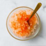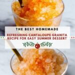 This refreshing Cantaloupe Granita is a sweet, icy treat made by blending ripe cantaloupe with water and sugar, then freezing it to create a light, slushy dessert perfect for hot days.