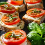 Start by slicing your baguette into half-inch thick rounds. Lightly brush both sides with extra virgin olive oil to ensure they crisp up beautifully in the oven. Toast the slices at 350 degrees Fahrenheit for about 5 minutes. This gentle toasting not only adds crunch but also creates a moisture barrier so your cheese and tomatoes don’t soak into the bread.