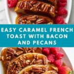 This indulgent Caramel French Toast recipe combines rich, buttery caramelized pecans and bacon with perfectly custardy French toast slices. The bread is soaked in a vanilla-spiced custard, pan-fried until golden, and topped with a luscious homemade caramel sauce infused with pecans and crispy bacon for a decadent breakfast treat that serves 10.