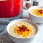 The magic of this soup shines when you add the right garnishes. Crispy bacon crumbles bring a smoky crunch, freshly grated cheese adds an extra cheesy punch, and a sprinkle of fresh thyme lifts the dish with herby brightness. These simple toppings make every spoonful feel special.
