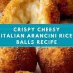 These Cheesy Italian Arancini Balls are crispy, golden-fried delights made with creamy Arborio rice, gooey mozzarella cheese, and a blend of Parmesan and fresh parsley. Perfectly breaded and fried to perfection, these appetizer-sized balls offer a deliciously cheesy center wrapped in flavorful rice, ideal for serving as a savory Italian starter or snack.