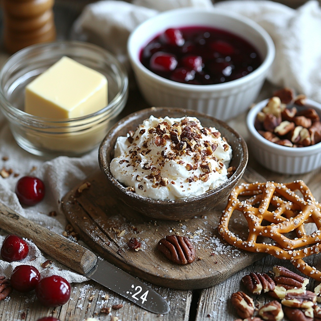 Cherry Pretzel Squares are a delightful no-bake dessert featuring a crunchy salted pretzel crust topped with a creamy sweetened cream cheese layer and luscious cherry pie filling. Finished with an optional sprinkle of chopped pecans, this treat is perfect for parties or a refreshing summer dessert.