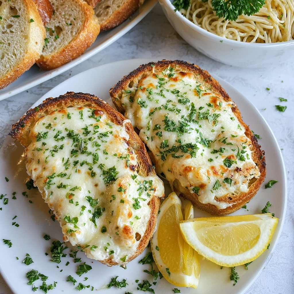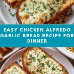 A delicious Chicken Alfredo Garlic Bread recipe that combines tender, pan-seared chicken and creamy Alfredo pasta atop crispy French bread, all baked to bubbly perfection with melted mozzarella cheese.
