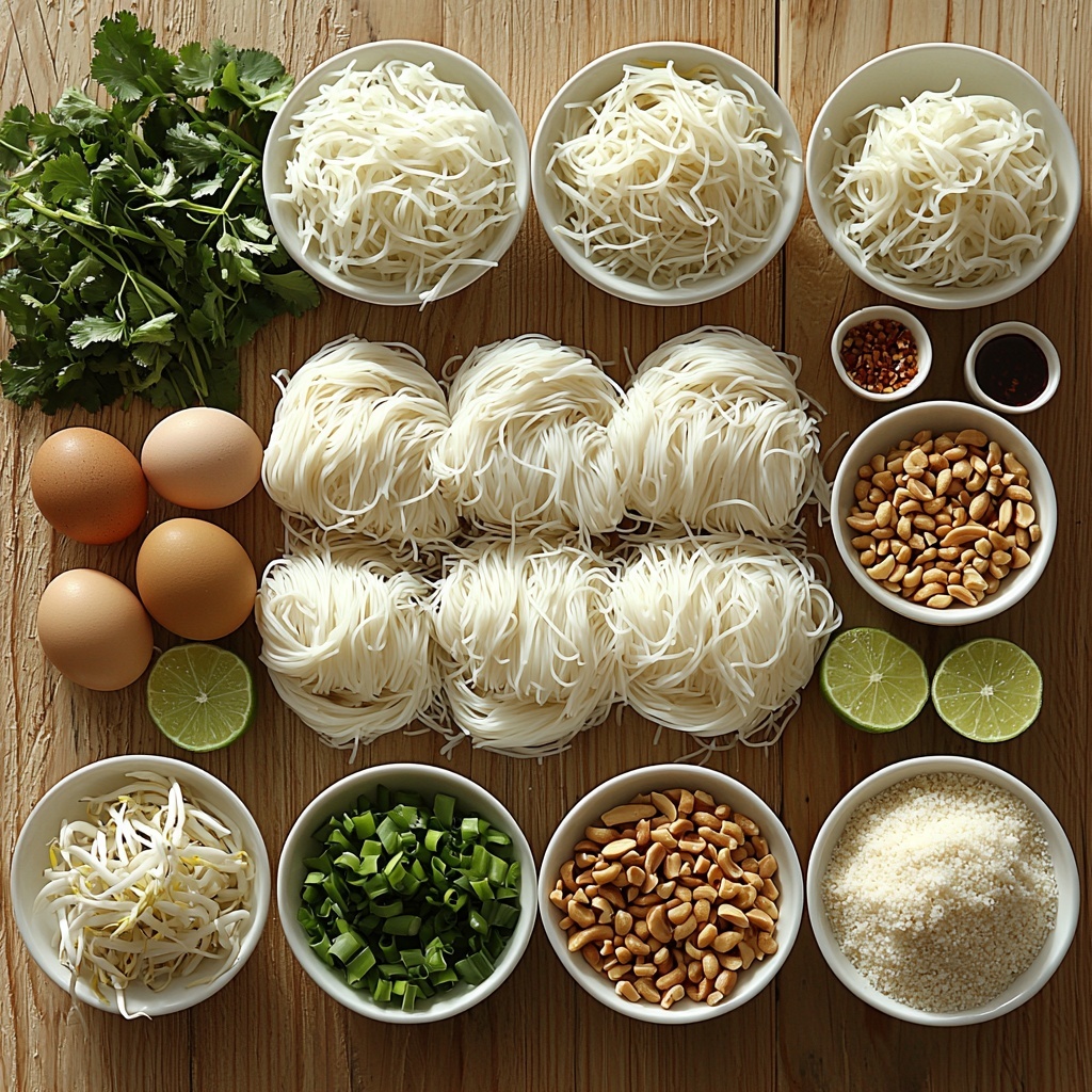 This Chicken Pad Thai Recipe shines because it relies on a handful of simple but essential ingredients. Each component brings its own magic, from the silky rice noodles providing the perfect base to the flavorful sauces creating that classic Pad Thai taste, plus fresh crunchy veggies that elevate the dish both in texture and color.