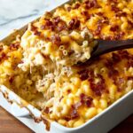 This Chicken Turkey Bacon Ranch Mac and Cheese Casserole is a creamy, cheesy comfort dish combining tender chicken, crispy turkey bacon, and a zesty ranch seasoning. Baked to golden perfection, this hearty casserole blends rich homemade cheese sauce with a delicious pasta base for a satisfying family meal.