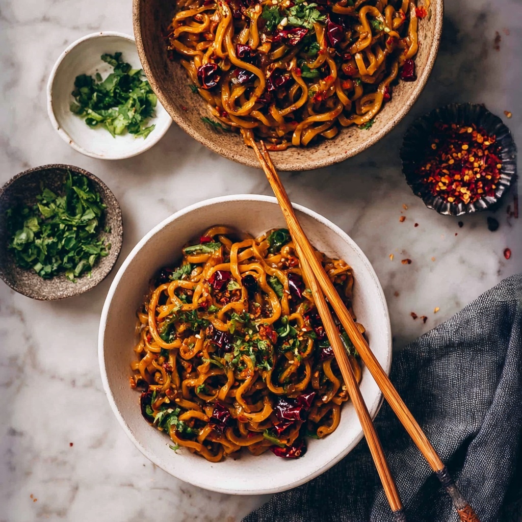 Chili Crisp Noodles are a flavorful and quick Asian-inspired dish featuring a spicy, aromatic chili crisp sauce combined with sesame paste, soy, and fresh herbs tossed with tender noodles. Perfect for a satisfying meal that balances heat, tang, and savory richness with minimal cooking time.