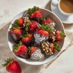 - Add Optional Coatings: If desired, immediately dip the chocolate-covered strawberries into desiccated coconut, crushed nuts, sprinkles, or any other coating to add texture and flavor, then place back on the tray.