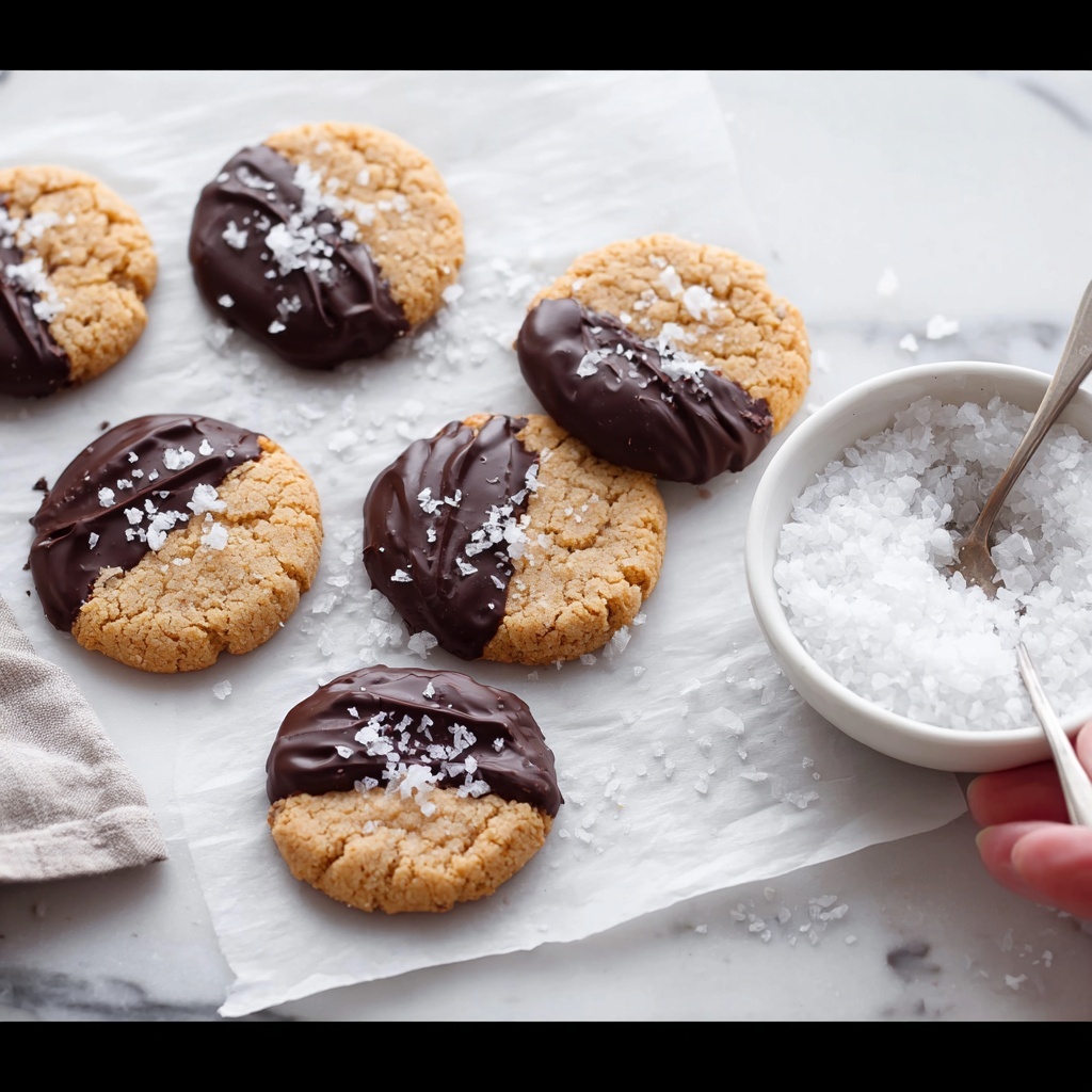Gently melt your dark chocolate chips in a microwave-safe dish at 15-second intervals, stirring in between to avoid burning. Dip each cooled cookie halfway into the melted chocolate and immediately sprinkle with a pinch of flake finishing salt for an elegant salty crunch. Allow the chocolate to harden fully before enjoying or storing.