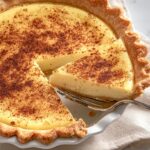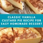 Classic Vanilla Custard Pie is a smooth, creamy dessert featuring a delicate custard filling infused with pure vanilla extract, baked in a flaky pie crust and finished with a hint of nutmeg. This timeless recipe is perfect for any occasion and serves eight generously.