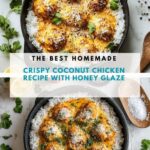 Delicious and crispy Coconut Chicken featuring a flavorful coating of shredded coconut, panko breadcrumbs, and aromatic spices, pan-fried to golden perfection and finished in the oven with a drizzle of honey for a subtle sweetness. This recipe combines textures and tropical flavors for a unique and satisfying chicken dish.