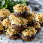 Serving these mushrooms on a rustic wooden board with leafy greens as a bed adds a charming touch that’s perfect for entertaining. You might also try skewering a few stuffed mushrooms on decorative picks as an elegant appetizer option. For a festive twist, place them on individual mini plates with a wedge of lemon or a dollop of aioli for dipping.