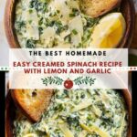 This classic creamed spinach recipe is a rich and flavorful side dish perfect for any occasion. Tender baby spinach is cooked in a creamy, buttery white sauce seasoned with shallots, garlic, spices, and finished with Pecorino Romano cheese and a bright touch of fresh lemon zest and juice. Easy to make and great for holiday meals or weeknight dinners, this creamed spinach is indulgent yet balanced.