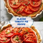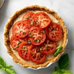 This classic Tomato Pie recipe features a flaky refrigerated pie crust filled with layers of juicy, salted tomatoes, crispy bacon, sharp white cheddar cheese, and a flavorful mixture of mayonnaise, green onions, garlic, and fresh basil. Baked until golden and set, this savory pie is a perfect appetizer or light meal with vibrant garden flavors.