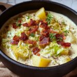 This creamy cabbage and potato soup combines tender potatoes, shredded cabbage, and aromatic caraway seeds in a rich, velvety broth finished with crispy bacon for a comforting and flavorful meal perfect for chilly days.