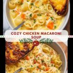 This comforting Chicken Macaroni Soup combines tender chicken, small shell pasta, fresh vegetables, and a rich, cheesy broth enhanced with whole milk and Dijon mustard. Topped with crusty baguette slices and melted shredded cheese, it’s a perfect hearty meal for any season.