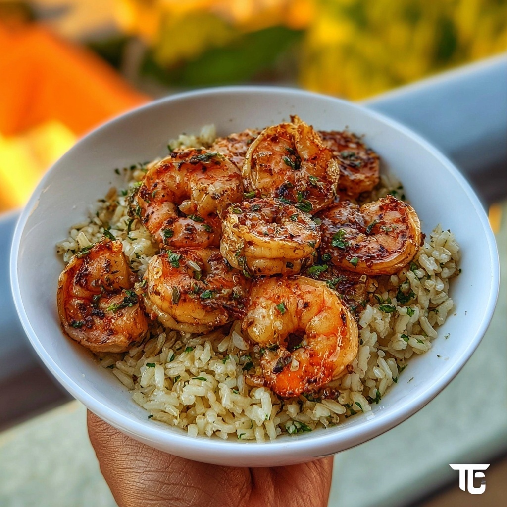 This Creamy Garlic Butter Shrimp Bowl combines succulent seared shrimp with a rich garlic butter cream sauce, served over fragrant herb rice. A quick and flavorful dish perfect for a satisfying dinner that comes together in just 25 minutes.