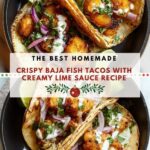 These Baja Fish Tacos feature crispy, golden-fried white fish served on warm corn tortillas topped with fresh cabbage, cilantro, creamy lime sauce, red onion, and avocado. Perfectly balanced with a hint of spice and zesty lime, this easy-to-make recipe brings the vibrant flavors of Baja California to your plate.