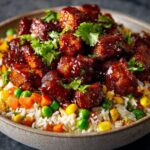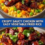 This Crispy Saucy Chicken with Vegetable Fried Rice is a flavorful Asian-inspired main course featuring tender, golden-fried chicken pieces coated in a tangy honey-soy glaze, served atop a vibrant vegetable fried rice. Perfect for an easy weeknight dinner, this dish combines crispy texture with a savory-sweet sauce and colorful vegetables for a satisfying meal.