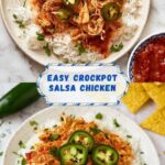 Your Crockpot Salsa Chicken Recipe is now ready to be enjoyed! Serve the juicy shredded chicken over cooked white rice or tucked inside warm tortillas for a satisfying taco night. Don’t forget to top with fresh cilantro and all your favorite garnishes.