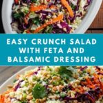 Want to make your Crunch Salad Recipe really stand out? Serve it in individual mason jars layered with dressing at the bottom, then the veggies, and feta on top. When it’s time to eat, just shake the jar for a perfectly tossed salad. It’s a fun and portable way to enjoy this fresh favorite.