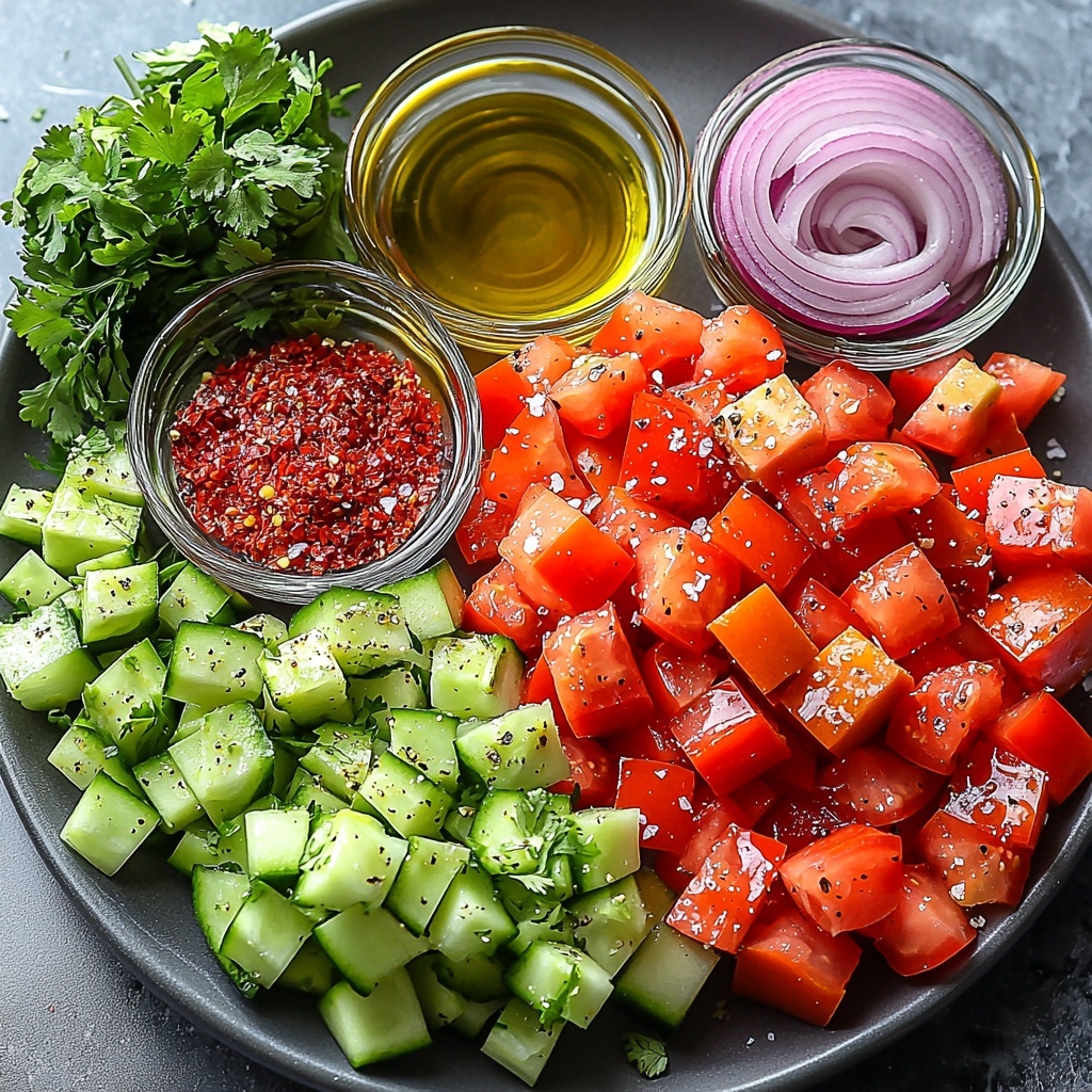 Start by washing your Roma tomatoes thoroughly and chopping them into bite-sized pieces. These tomatoes are the heart of the salad, offering juiciness and a vibrant red hue that instantly makes the dish look appetizing.