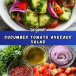 A fresh and vibrant Cucumber Tomato Avocado Salad perfect for a quick, healthy side dish or light meal. This no-cook salad combines juicy Roma tomatoes, crisp English cucumber, creamy avocado, and zesty lemon dressing for a refreshing flavor experience.