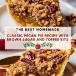 This classic Pecan Pie with Brown Sugar recipe features a flaky homemade crust filled with a rich, sweet, and buttery pecan filling sweetened with brown sugar, corn syrup, and a hint of lemon juice. Crunchy toffee bits and toasted pecans add an extra layer of texture and flavor, making this dessert a perfect indulgence for any occasion.