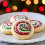 These Deliciously Swirled Christmas Cookies are a festive treat perfect for holiday celebrations. Featuring three vibrant dough colors—plain, red, and green—layered and rolled into a beautiful swirl, they are as pleasing to the eye as they are to the palate. Soft, buttery, and lightly sweetened, these cookies are finished with sanding sugar for a sparkling decorative touch. Ideal for sharing with family and friends during the Christmas season.