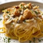 A sprinkle of freshly chopped parsley adds a pop of vibrant green color and a subtle freshness that balances the richness of this creamy pasta dish. It’s a simple touch that makes the presentation feel both elegant and inviting.