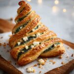 This Easy Christmas Tree Spinach Feta Bread is a festive and delicious appetizer perfect for holiday gatherings. Made with flaky puff pastry layered with a flavorful mixture of spinach, feta, mozzarella, and garlic, this visually stunning bread is shaped like a Christmas tree and baked to golden perfection. It’s simple to prepare and sure to impress your guests with its savory taste and charming presentation.