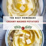 Transfer your mashed potatoes to a serving bowl and dot the top with extra butter or drizzle melted butter over the surface. For a beautiful finishing touch, sprinkle chopped fresh parsley or freshly grated cheese on top to add color and extra flavor.
