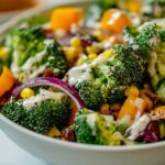 - Mix Dressing with Salad: Pour the dressing over the broccoli mixture and toss thoroughly to ensure all ingredients are well coated with the dressing.