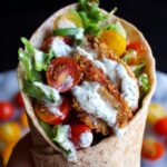 These Fried Chicken Wraps with Homemade Ranch Dressing combine crispy, golden-brown chicken strips with fresh vegetables and creamy homemade ranch, all wrapped in whole wheat tortillas. Perfect for a quick and satisfying meal, these wraps offer a delightful mix of textures and flavors, ideal for lunch or dinner.