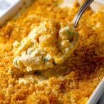 Mix the remaining melted butter with the crushed corn flakes in a bowl to make sure every flake gets coated in butter. Then sprinkle this golden mixture generously over the casserole’s surface to create that signature crisp topping.